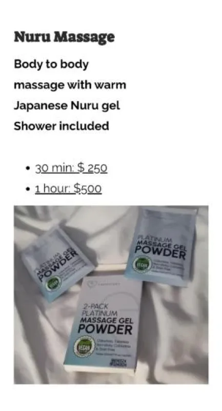 NURU MASSAGE PROSTATE MASSAGE/ MILKING SISSY HUMULIATION SCAT PEGGING GOLDEN SHOWER FACESITTING FOOTJOB BREAST RELIEF AND MUCH MORE Don't worry...
